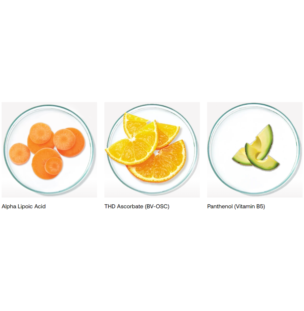 THD askorbatas (BV-OSV) - fotostabilus, riebaluose tirpus vitaminas C pasižymi optimaliu įsiskverbimu ir biologiniu prieinamumu į odą, padeda panaikinti matomus fotosenėjimo požymius ir užkirsti kelią būsimai žalai.