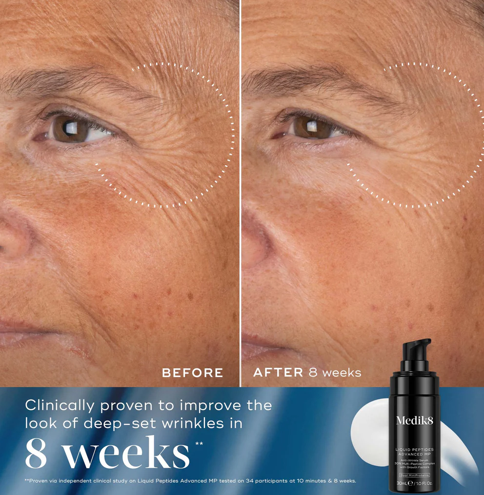 Pažangus peptidų serumas su inovatyvia technologija Dual MiniProteins™. Kliniškai patvirtinta, kad vos per 10 minučių sumažina mimikos raukšlių ir per 8 savaites – giliųjų raukšlių matomumą.[1]