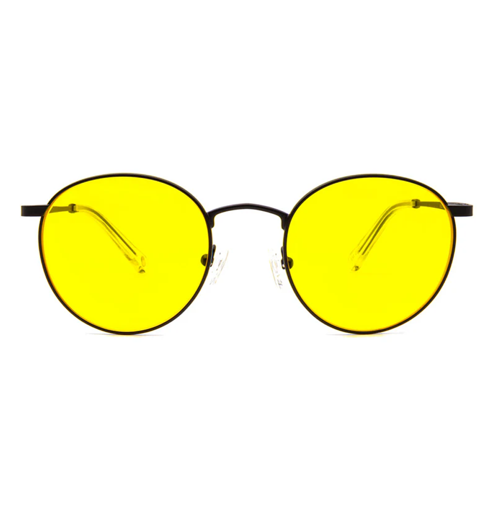 Geltoni apsauginiai akiniai Mesi su juodais rėmeliais nuo mėlynos šviesos