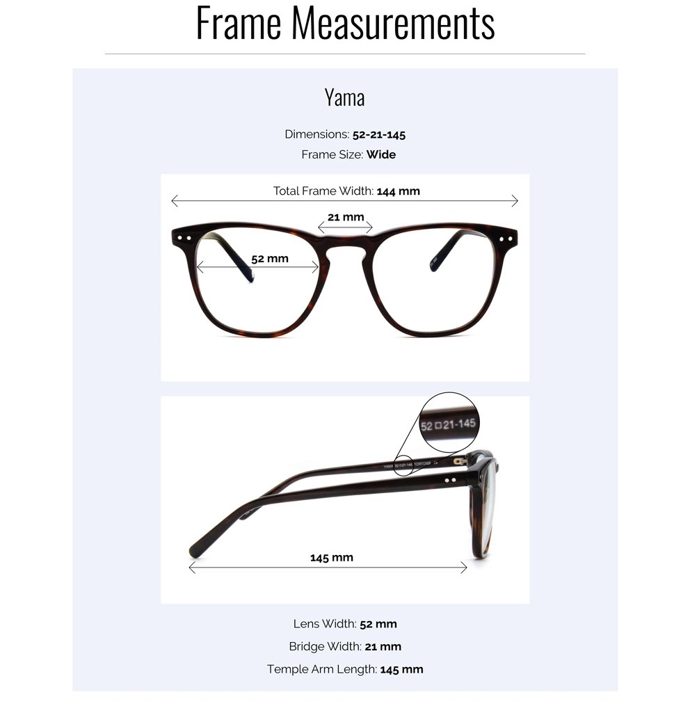 Yama klasikinio kvadrato formos rėmeliai išsiskiria subalansuotomis proporcijomis ir ryškiu raktų skylutės formos tilteliu (keyhole bridge). Šie rėmeliai puikiai tinka didesniems veido bruožams arba visiems, ieškantiems šiek tiek didesnio modelio.